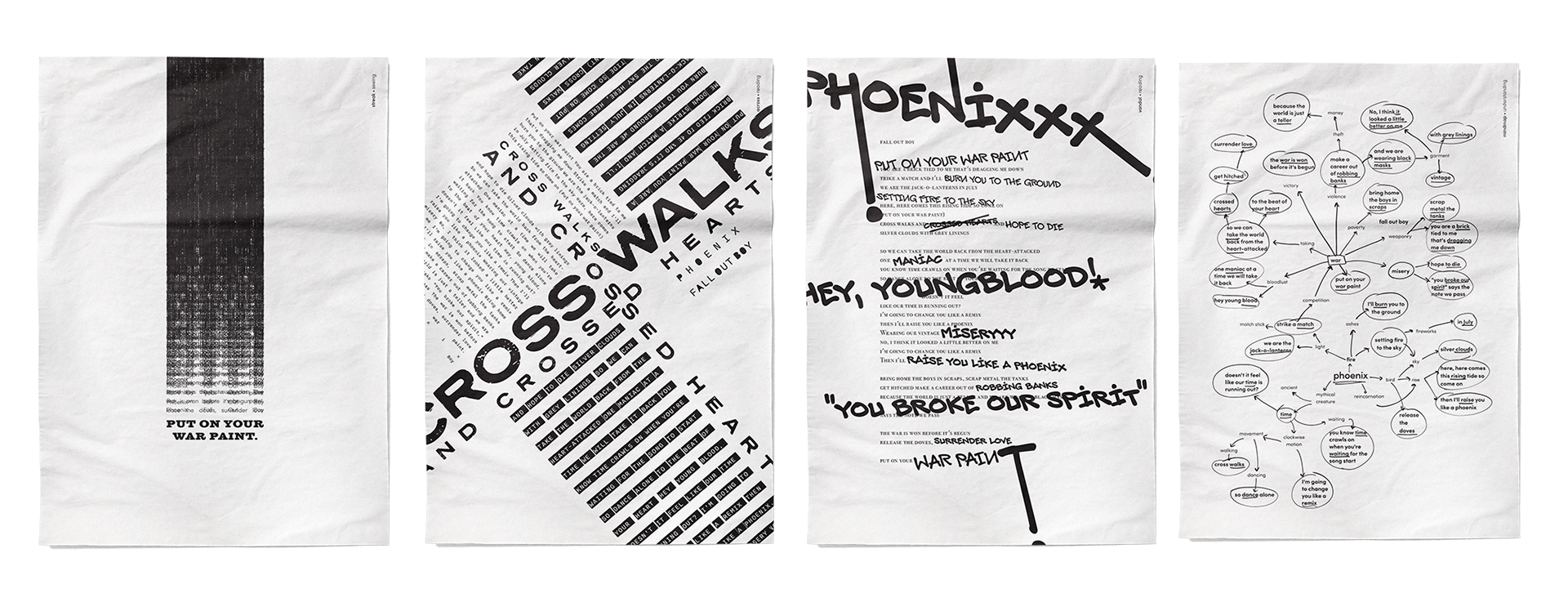Using text to create texture and applying meanings of text to work with the structure of the composition helped in the variety ways one can express the lyrics through typography.