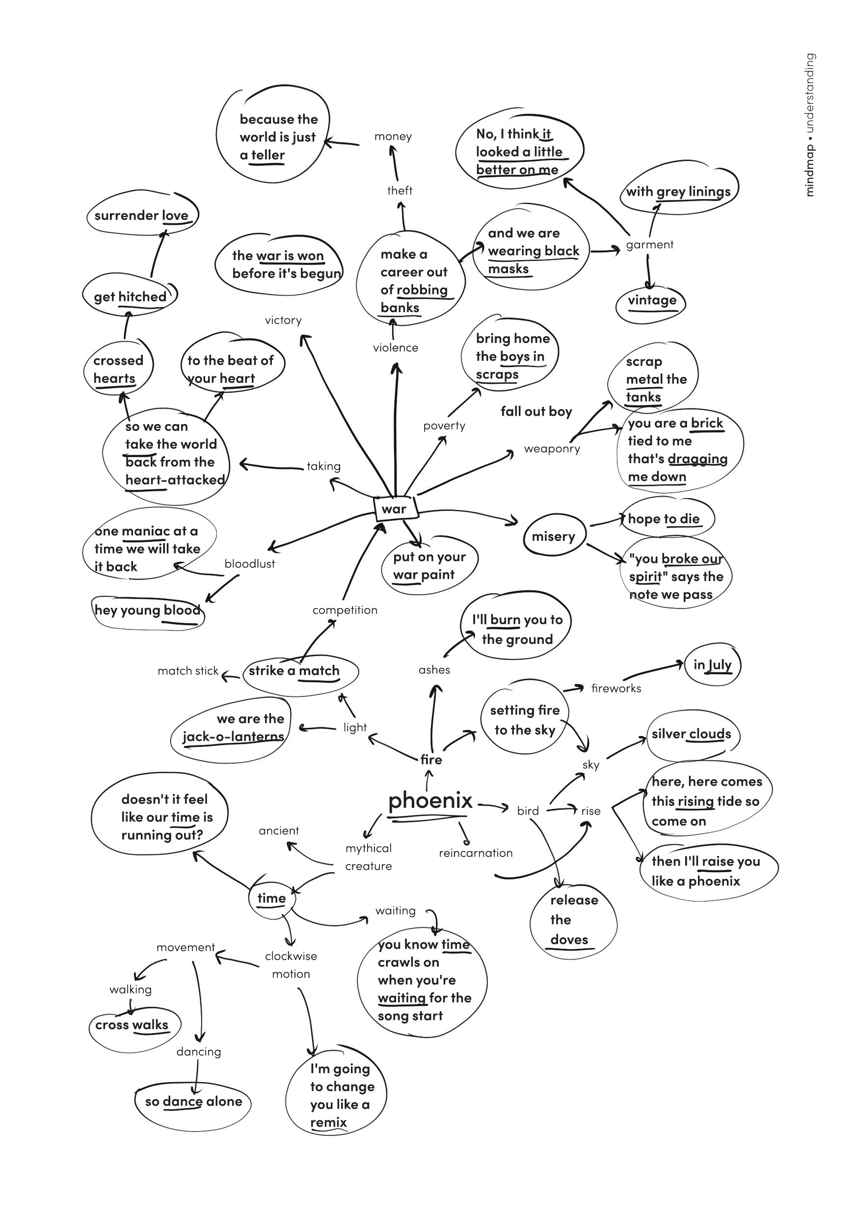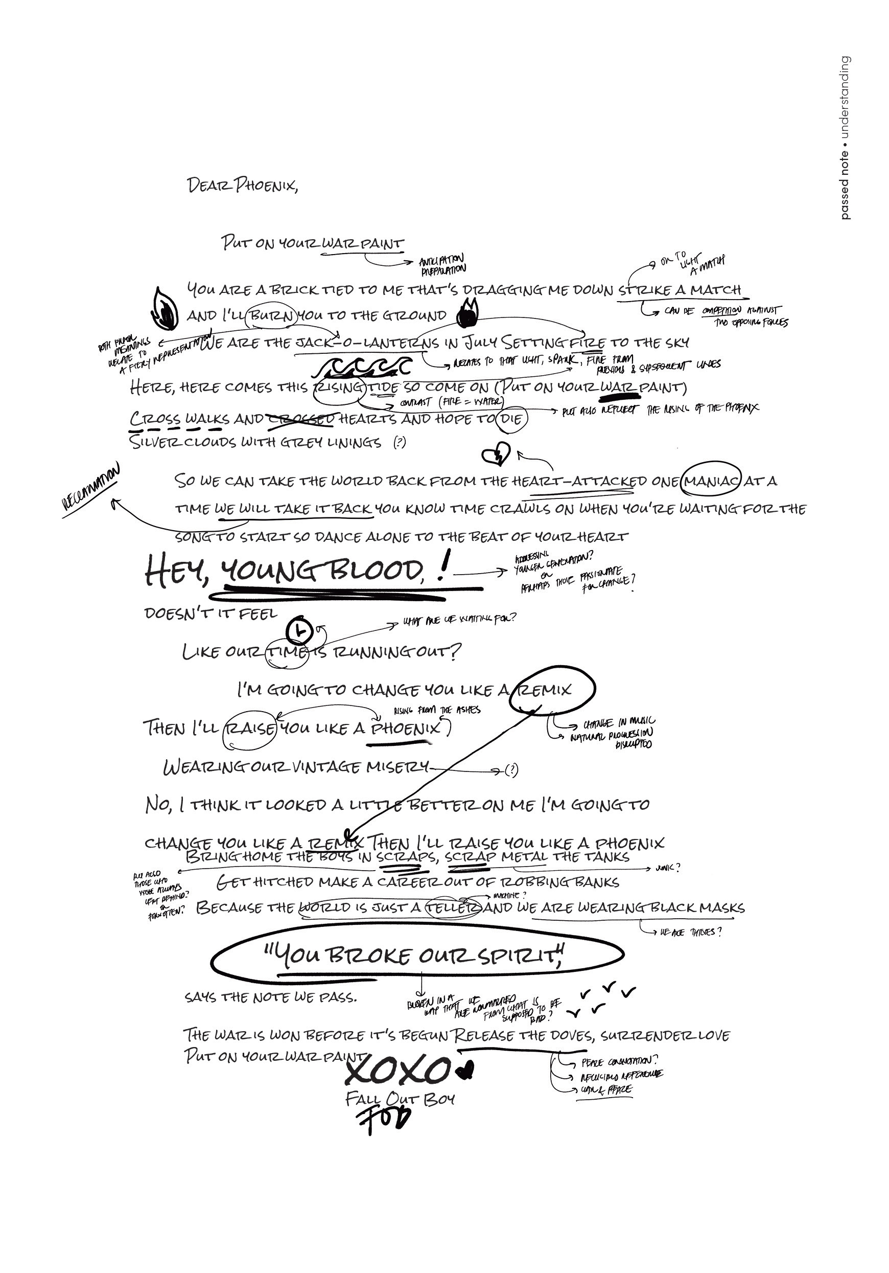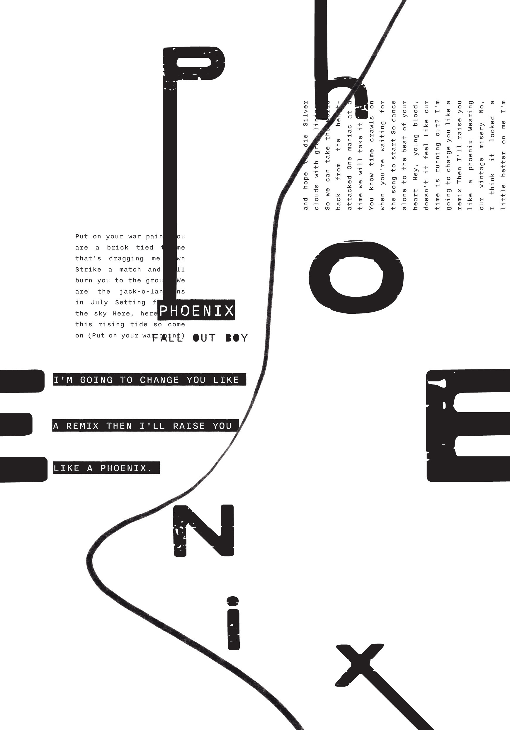 The final pieces highlight the song Phoenix by Fall Out Boy. Themes that resonate with the song evoke extreme emotion, a revolt, an angst against something but also the sense of rising above and awakening from hardships that one had been experiencing it all.