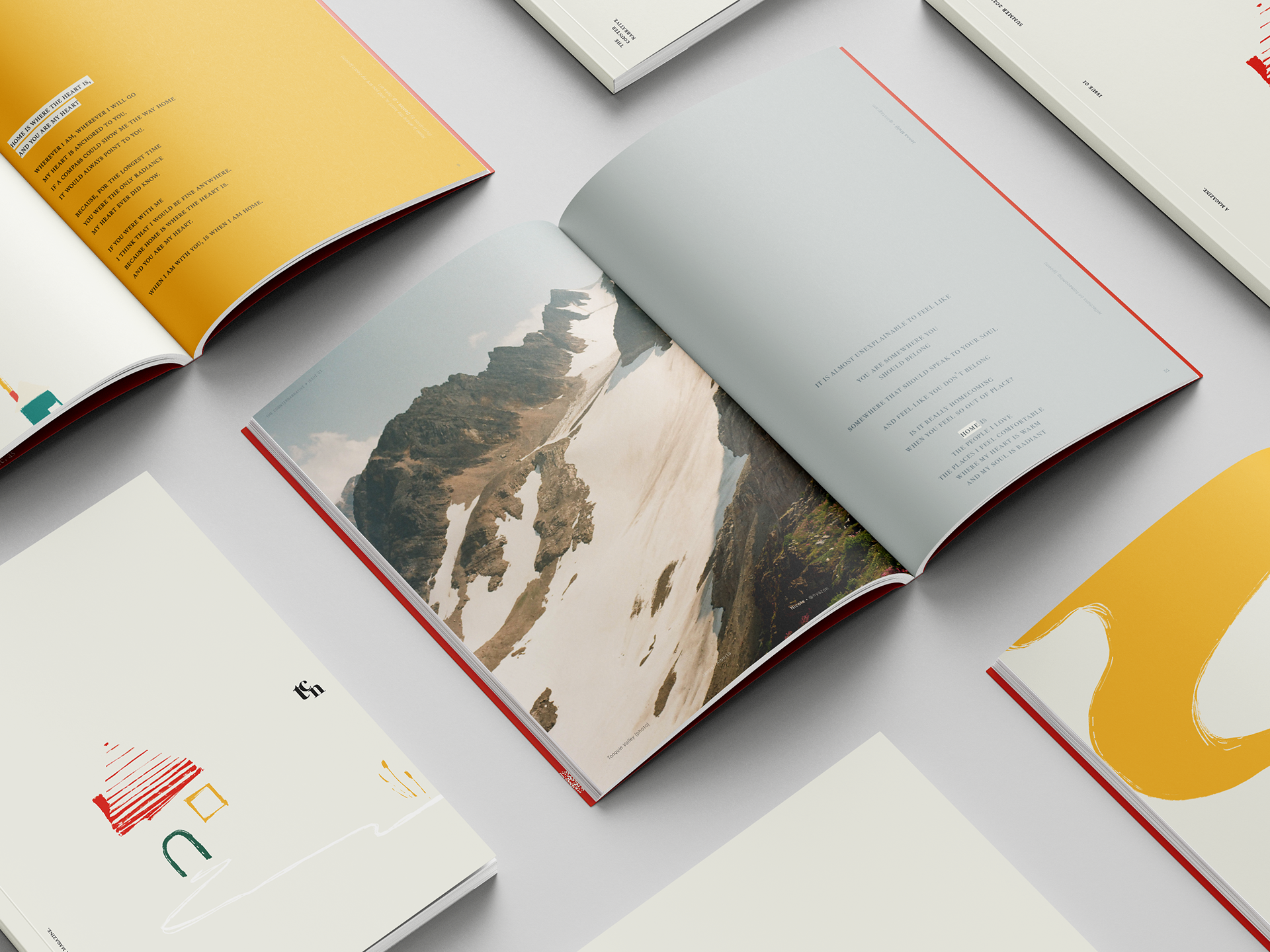 The overall layout design, followed a slight post-modern composition making each spread dynamic which tells a story through the visual and literary elements integrated within each page.